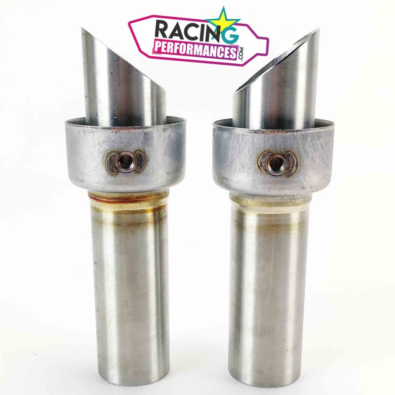 2 Chicanes akrapovic droites diamètre 48mm pour paire de silencieux d'échappement Akrapovic titane ou carbone avec embouts biseautés.
